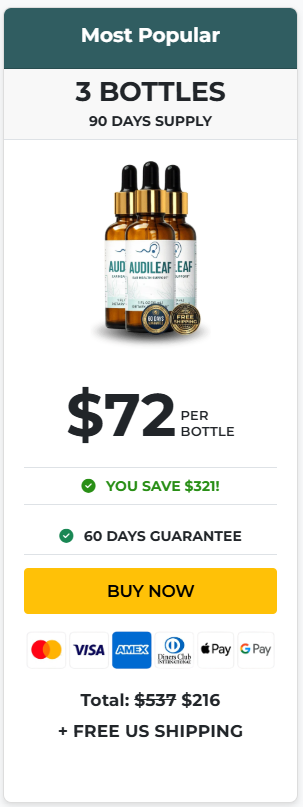 Every Audileaf purchase comes with a 60-day 100% money-back guarantee. If you are not satisfied with the results, you can take advantage of this refund policy to get a full refund. While the Audileaf formula is made with natural ingredients, its effects may vary from person to person. If you have used the supplement for the recommended period and did not achieve the desired results, you are eligible to request your refund.